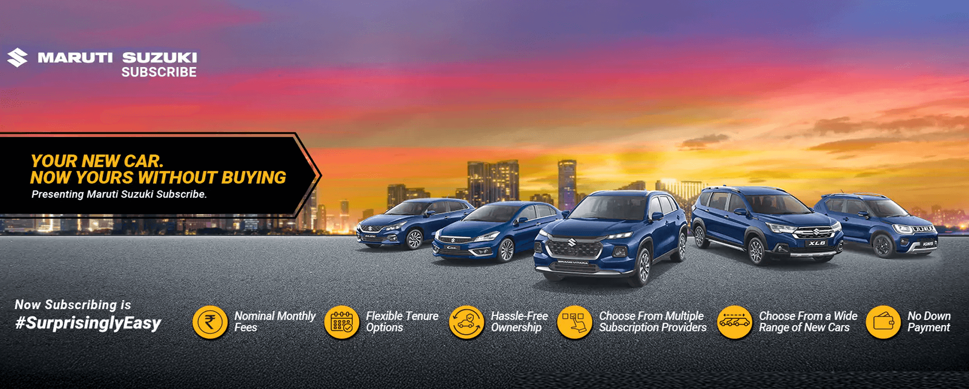 To provide an easy and hassle-free subscription experience, Patel Motors , Neemuch has partnered with MYLES, ALD Automotive and ORIX as applicable on location with 24X7 roadside assistance. So, simply choose your favourite car and monthly subscription plan and subscribe now!